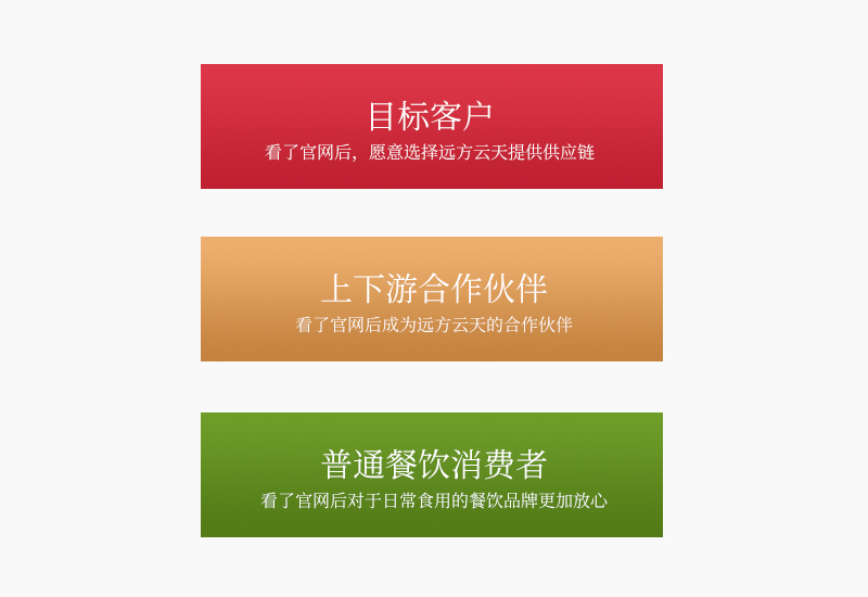 由于遠方云天之前并未有官網,所以網上對于該企業的資料比較少,甚至充斥著一些虛假不實的消息,所以本次網站建設遠方云天希望用戶“打開網站就知道我們是做什么的,了解我們的實力,愿意與我們合作”。經過我們雙方的相互討論,最終確定了三個應用場景來作為建站方向,只有滿足了這三類目標群體對于遠方云天的信賴與關注,才算得上達成了本次建站的目的;