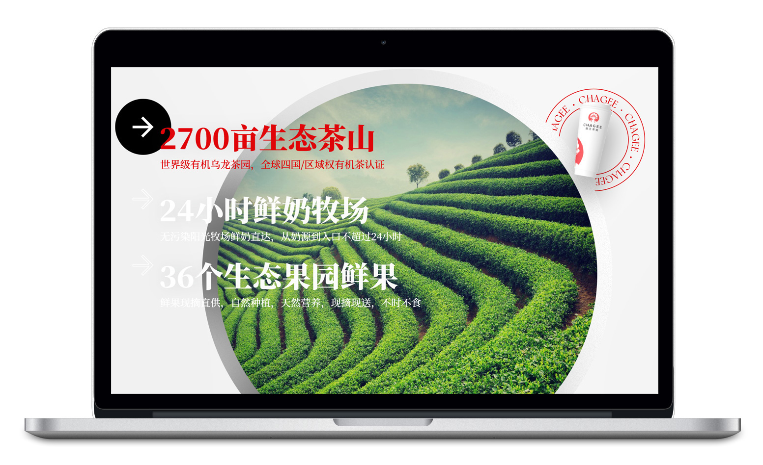 根據(jù)霸王茶姬本身產(chǎn)品素材尺寸以寬屏為主的特點,蜀美在該頁面摒棄了傳統(tǒng)的垂直式瀏覽模式而采用水平體驗的方式,力求更加完美的展現(xiàn)霸王茶姬的產(chǎn)品。